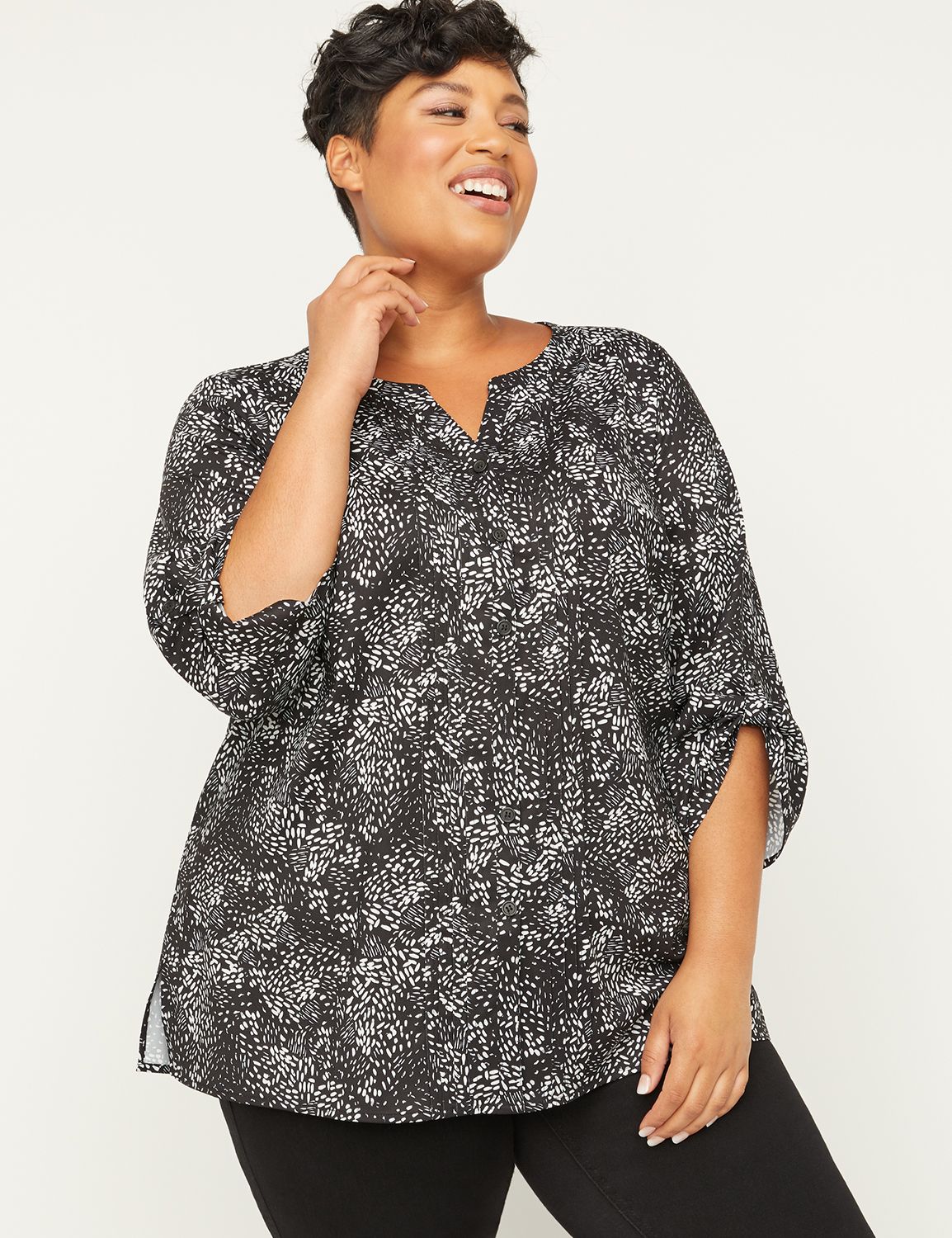 NYDJ Plus Size Plus Size Pintuck Blouse (Tumble Leaves) Women's Blouse